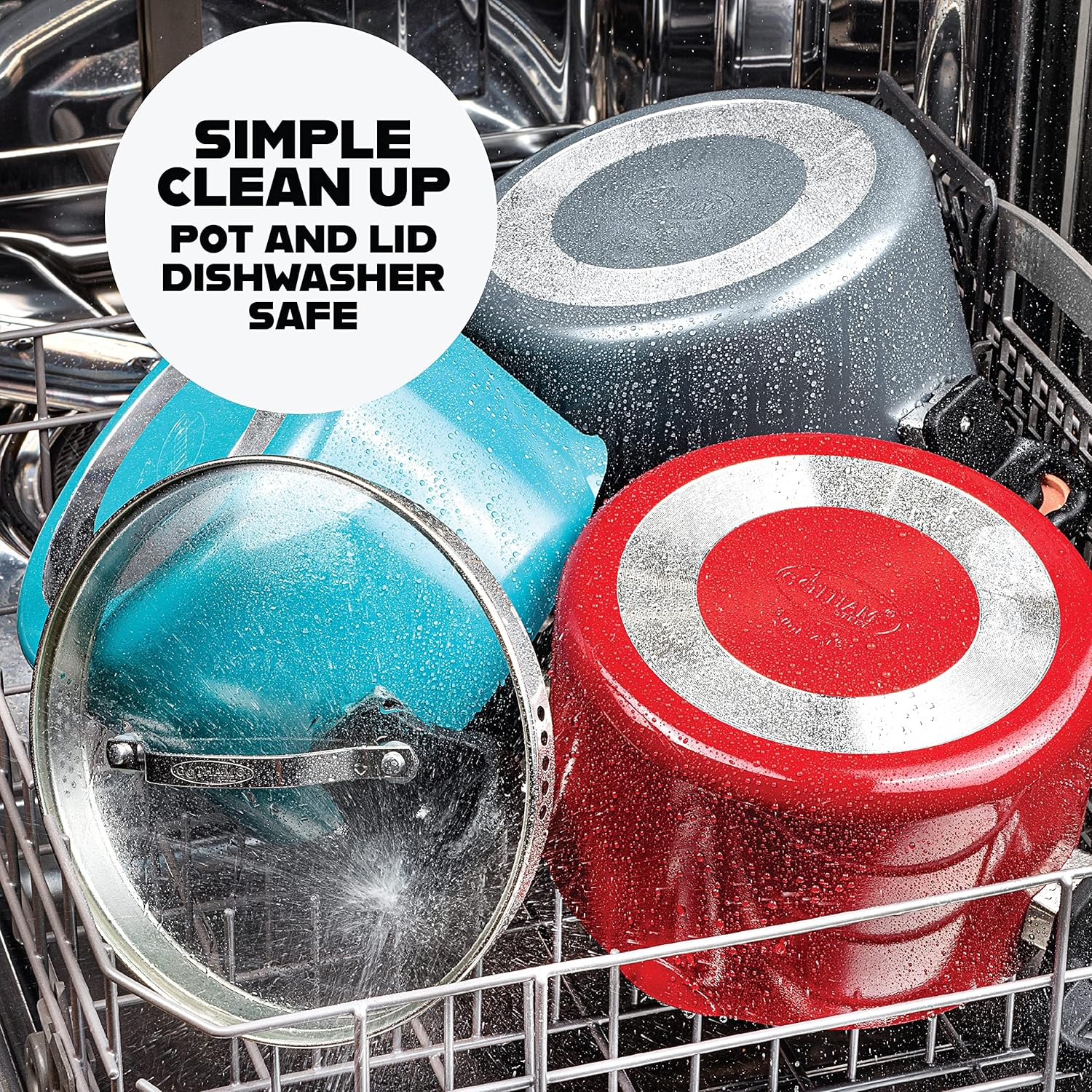 Crafted with durable construction, this stock pot is designed to withstand everyday use in the kitchen. The tempered glass lid allows you to monitor your cooking progress without losing heat, while the dishwasher-safe design makes cleanup a breeze. Whether you're boiling pasta, simmering soups, or cooking up a delicious stew, the Gotham Steel Stock Pot is the perfect addition to any kitchen. Upgrade your cookware collection with this versatile and reliable pot today.